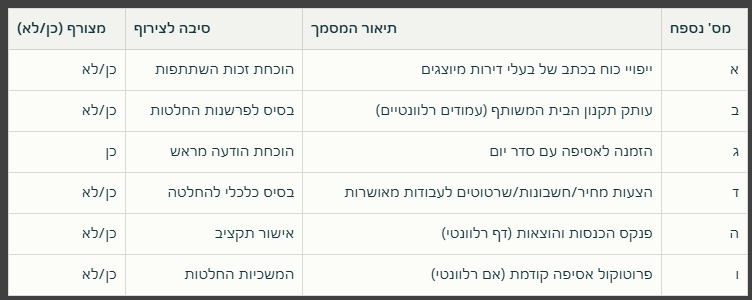 מסמכים מזהים שיש לצרף לפרוטוקול אסיפת דיירים