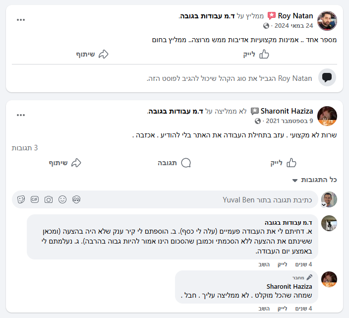 באופן כללי, ד.מ עבודות בגובה נחשב לעסק אמין ומקצועי, עם דגש חזק על שירות לקוחות וניסיון אמיתי בשטח