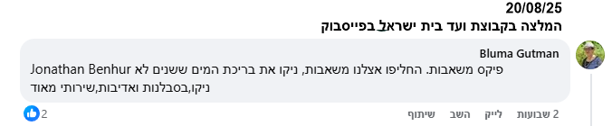 חוות דעת חיוביות נוספות ברשת מדגישות זמינות, שירות אדיב ומענה מקצועי מהיר לבעיות לחץ מים ותקלות שונות.