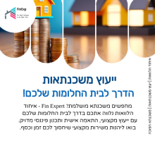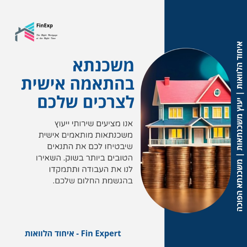 ב-Fin Expert אנו שואפים להיות לצידכם בכל שלב – עם ייעוץ פיננסי אישי, פתרונות מותאמים לצרכים הייחודיים שלכם ושירות מקצועי ללא פשרות.