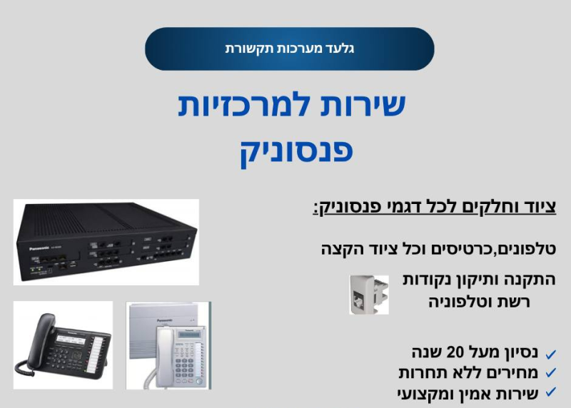 מתמחים במרכזיות פנסוניק מכל הסוגים,נסיון של מעל 20 שנה, ליווי עסקים בתחום התקשורת,שרות אמין ואחריות