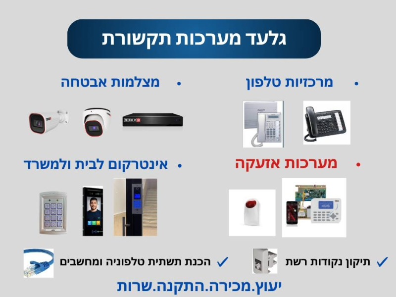 פתרונות תקשורת טלפוניה ומחשבים. מצלמות אבטחה. אינטרקום לבניין משותף ולבית פרטי. מערכות אזעקה. ייעוץ התקנה ושירות.
