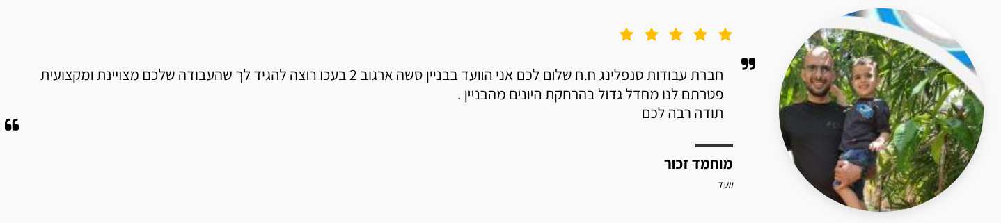 דיירים מציינים שירות אדיב, תוצאות מעל ציפיות ופתרונות ארוכי טווח ללא נזקים.