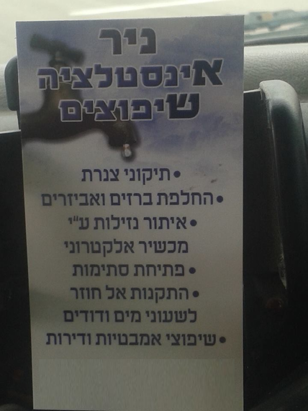 הוא מתמחה בפתיחת סתימות, תיקון נזילות, תיקון והחלפת ברזים, עבודות ביוב ותיקוני ניאגרות בדירות ובבתים פרטיים.