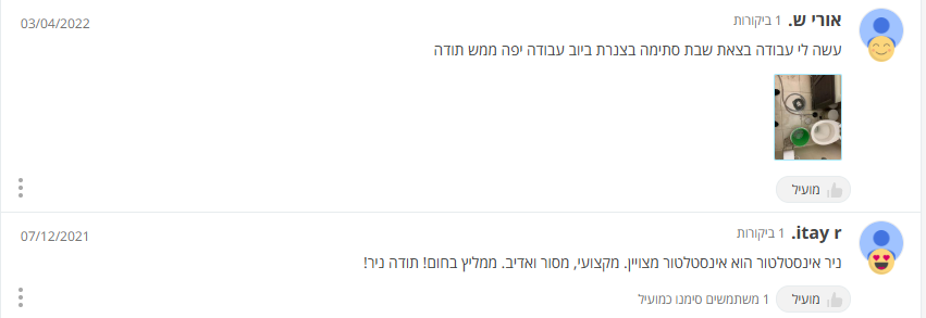 ניר שאתי, אינסטלטור, מקבל ברשת ביקורות חיוביות רבות ומוגדר כאיש מקצוע אמין ומומלץ.