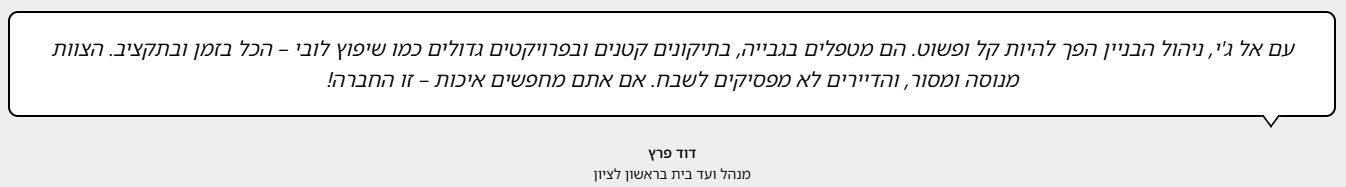 ביקורות ועדויות של לקוחות על אל ג'י ניהול ואחזקת מבנים