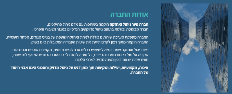 חברת פיור ניהול ואחזקה מתמחה בניהול ואחזקה של בניינים ברמה הגבוהה ביותר.