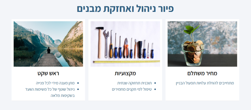 מה שמייחד את החברה שלנו הוא שילוב של אמינות, מקצועיות ויעילות, מה שמבטיח שכל בניין יהיה מנוהל בצורה הטובה ביותר, תוך מתן שירות אישי ומענה מהיר לכל צורך.